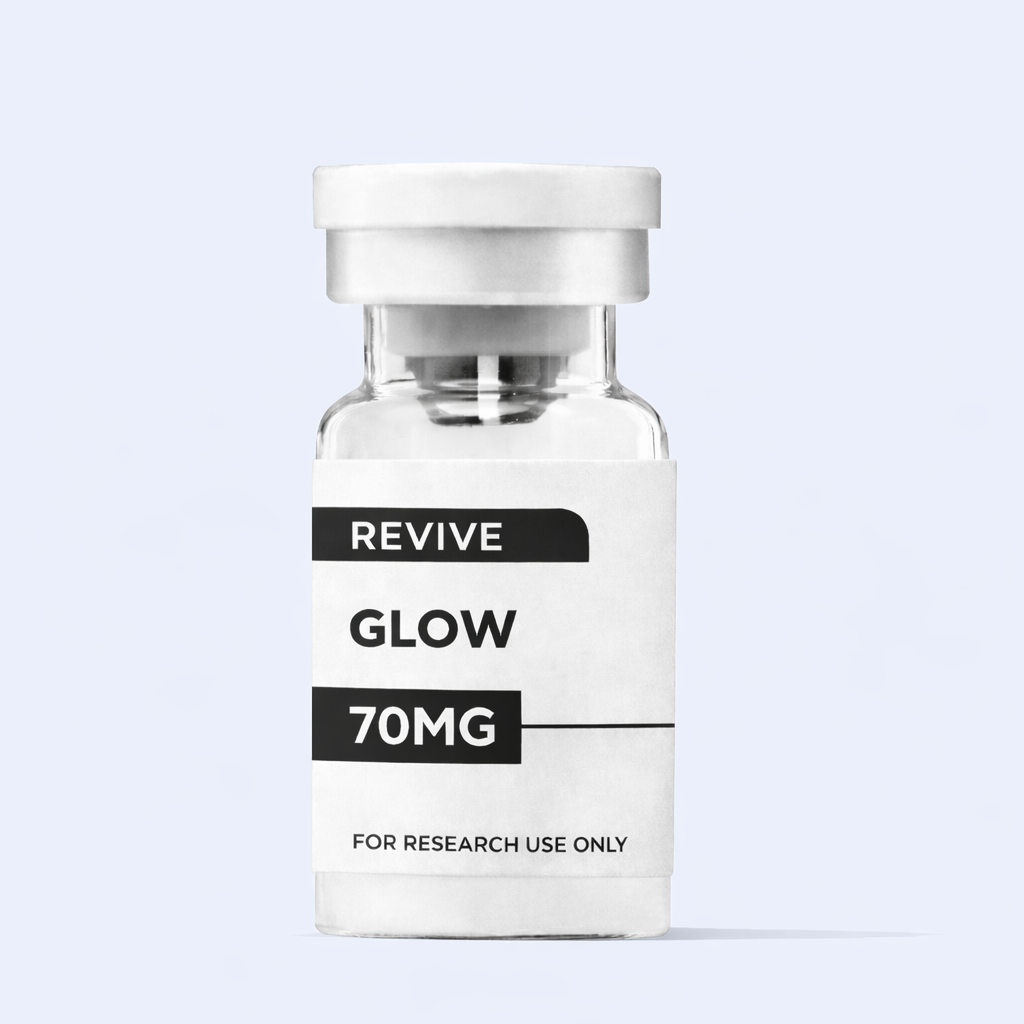 GLOW (TB4 10 + BP 10 + GHK 50) is a lyophilized research blend formulated for controlled in-vitro investigations involving cellular signaling, tissue-model dynamics, and regenerative pathway analysis. Not for human use.